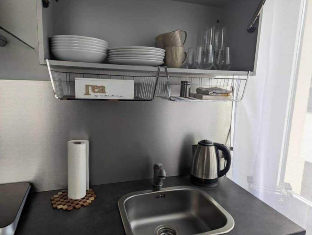 Coffee machine, Cooking utensils, Kitchen stove, Kitchenette, Microwave, Refrigerator